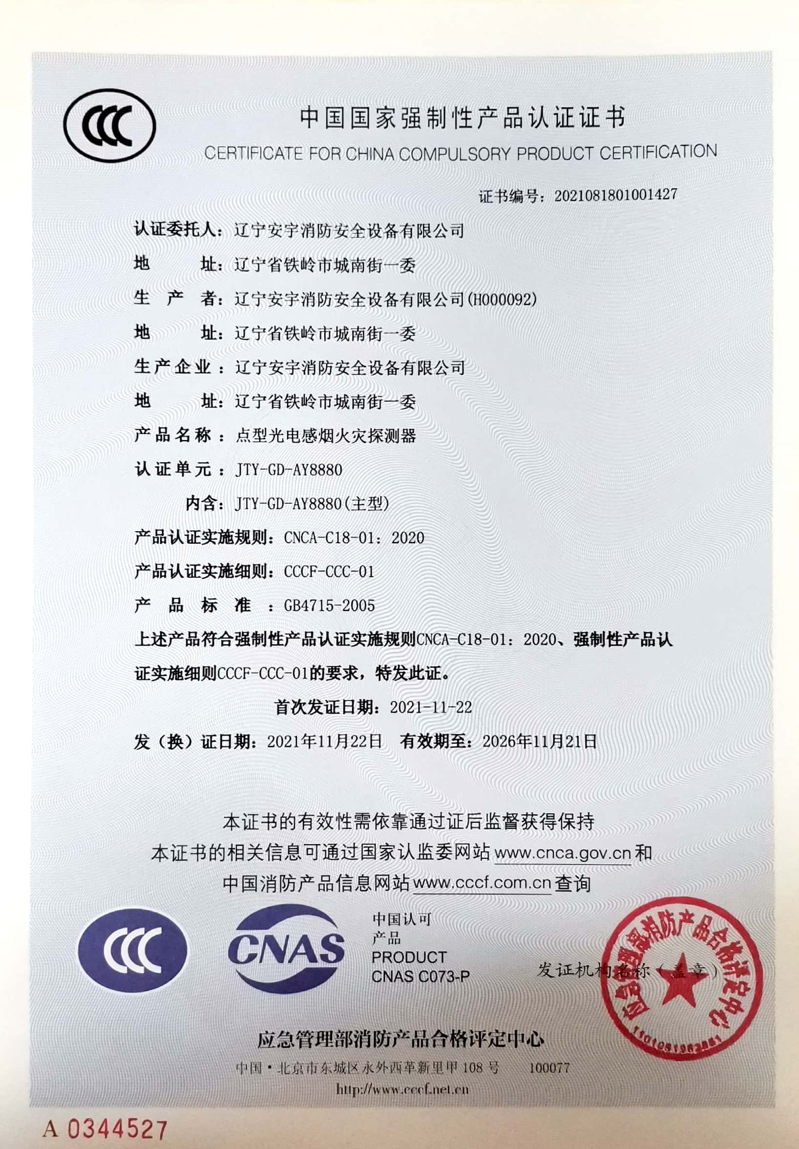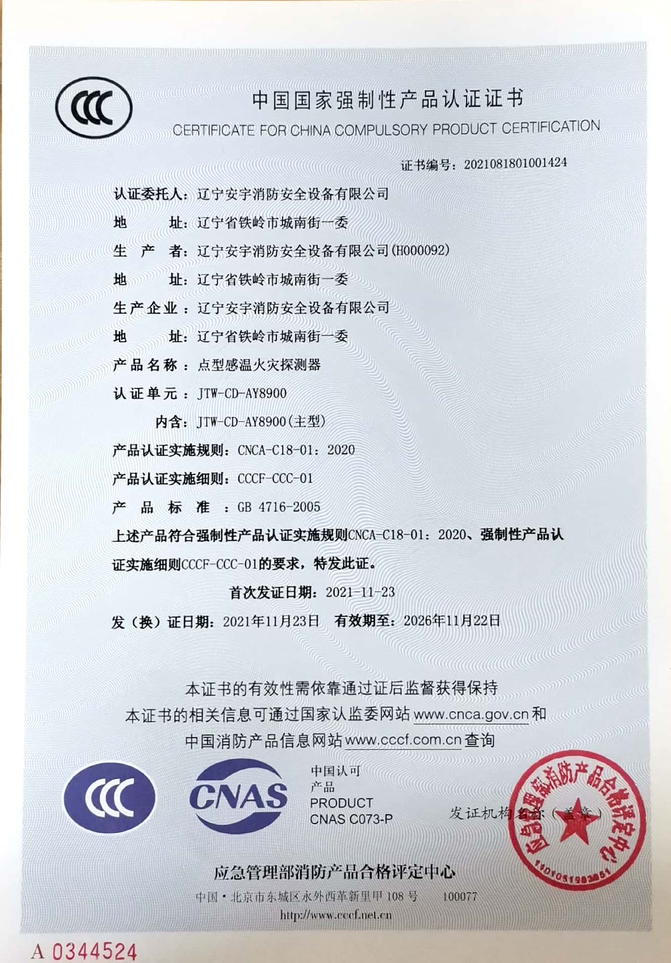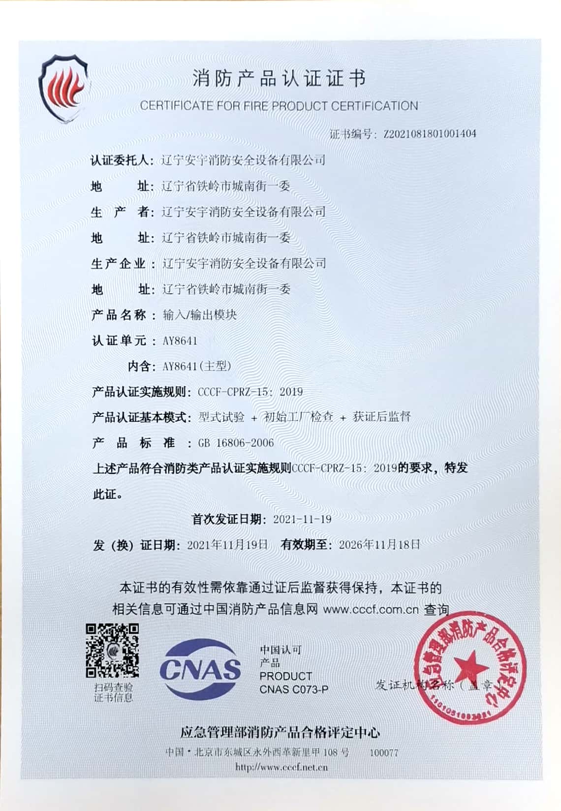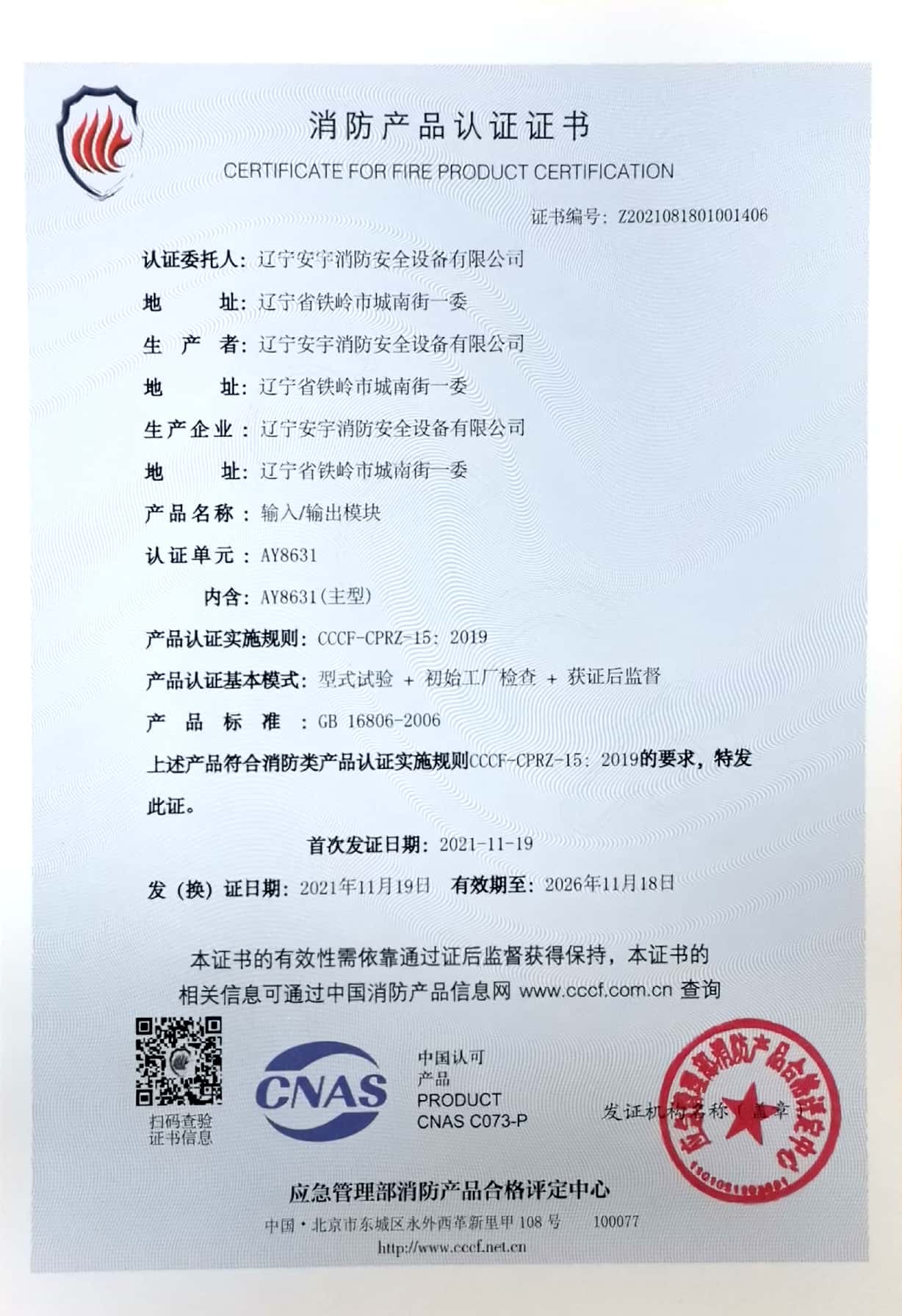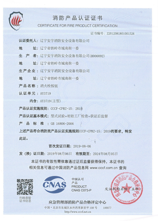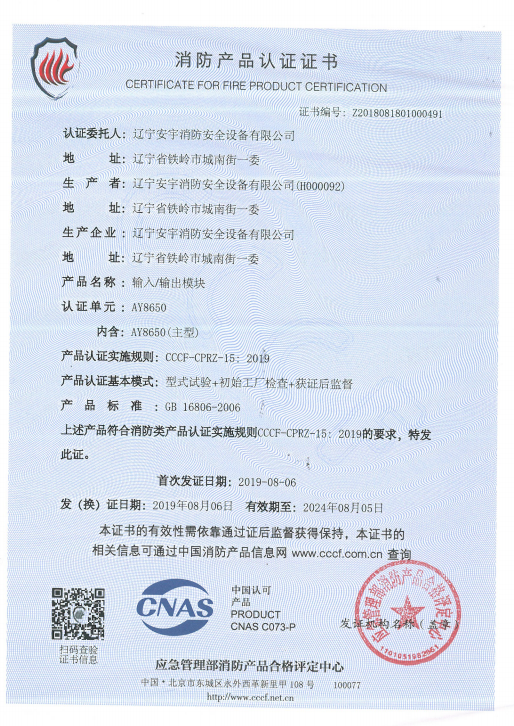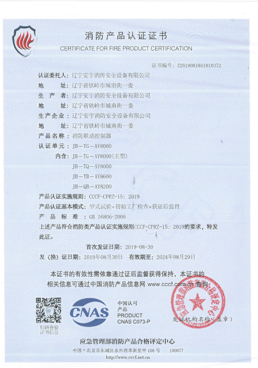 公司以高素質(zhì)的職業(yè)化人才隊伍、完善的現(xiàn)代化管理機制和質(zhì)量管理體系,獲得了中國認證機構(gòu)國家認可委員會(CNAB)認可的中國質(zhì)量認證中心(CQC)質(zhì)量管理體系認證公安部消防產(chǎn)品合格評定中心的產(chǎn)品質(zhì)量認證中國強制性產(chǎn)品認證(China Compuisory Certification ,簡稱3C)認證,使安宇產(chǎn)品在技術(shù)含量及產(chǎn)品的質(zhì)量和穩(wěn)定性方面始終處于國際同行業(yè)前端水平。